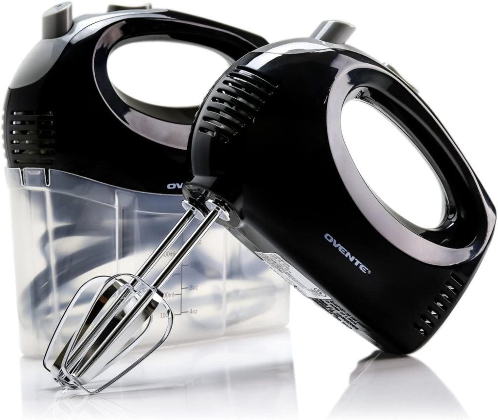 10. Ovente Electric Hand Mixer with 5 Speed Ultra Mixing Power and Snap-On Storage Case
